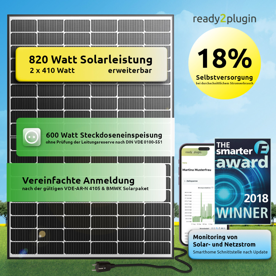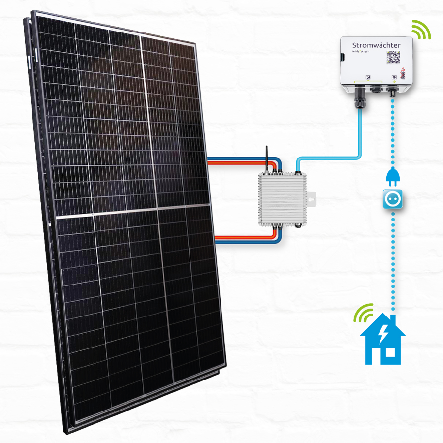 Der ready2plugin Stromwächter macht es möglich, Steckersolargeräte bis 2000 Watt ohne Eingriff in die bestehende Elektroinstallation anzuschließen und sicher zu betreiben. Dadurch kann das System mit zusätzlichen Modulwechselrichtern (und Solarmodulen) erweitert werden. Der Stromwächter sorgt dafür, dass die Leitungsschutzschalter (Sicherungen) auch nach dem Anschluss eines Steckersolargerätes weiter zuverlässig die Elektroinstallation vor Überlastung schützen, indem er rechtzeitig eingreift, sobald er eine durch Erzeugungsspitzen drohende Leitungsüberlastung registriert. Ohne diese Sicherheitstechnologie muss laut DIN VDE 0100-551 die Leitungsreserve des Steckersolar-Stromkreises überprüft und ggf. hergestellt werden, da andernfalls die elektrischen Leitungen bis zum Brand überhitzt werden können.